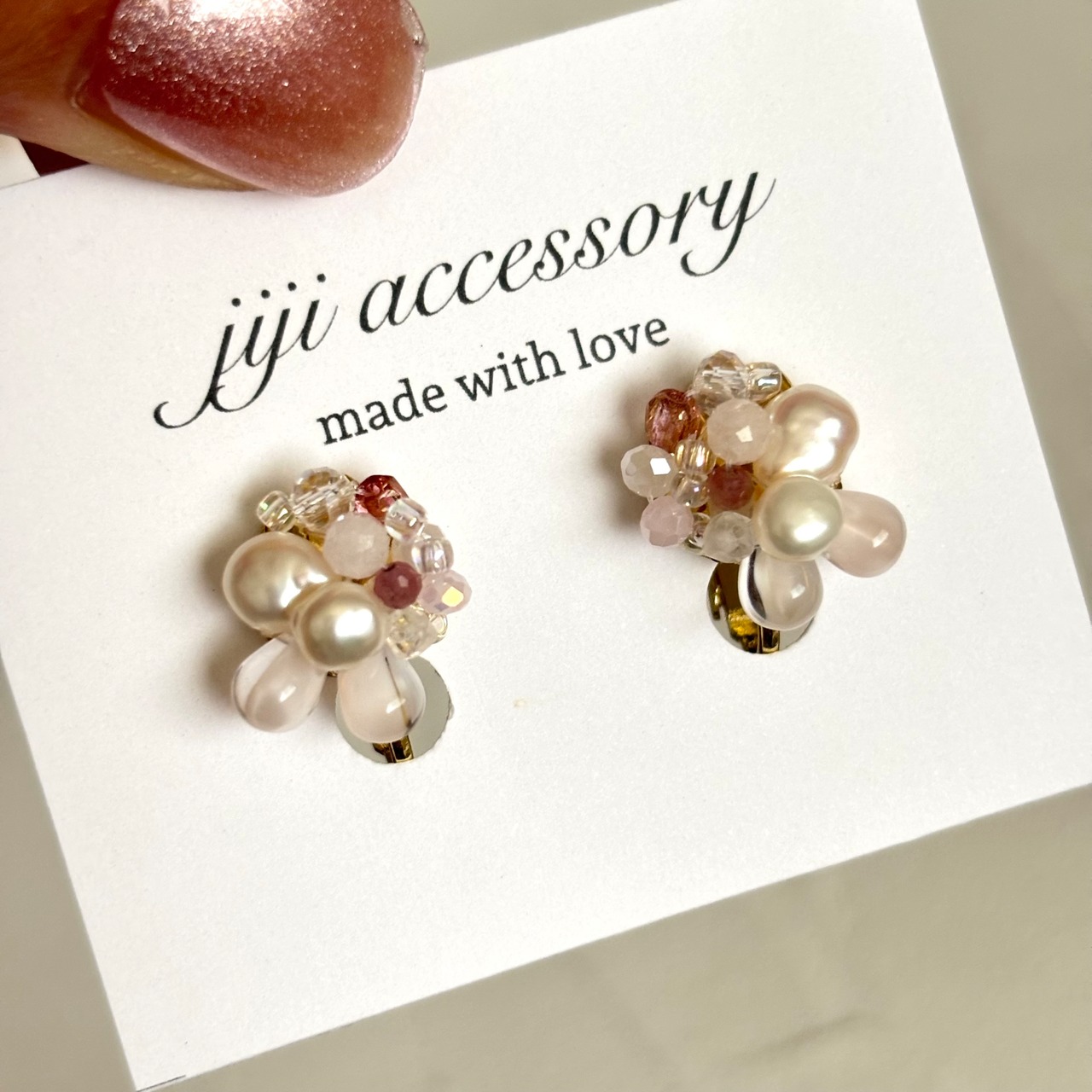 • 淡水パール→天然素材の為、若干ですが一つひとつ形に違いがあります。個性としてお楽しみ頂けたら嬉しいです。