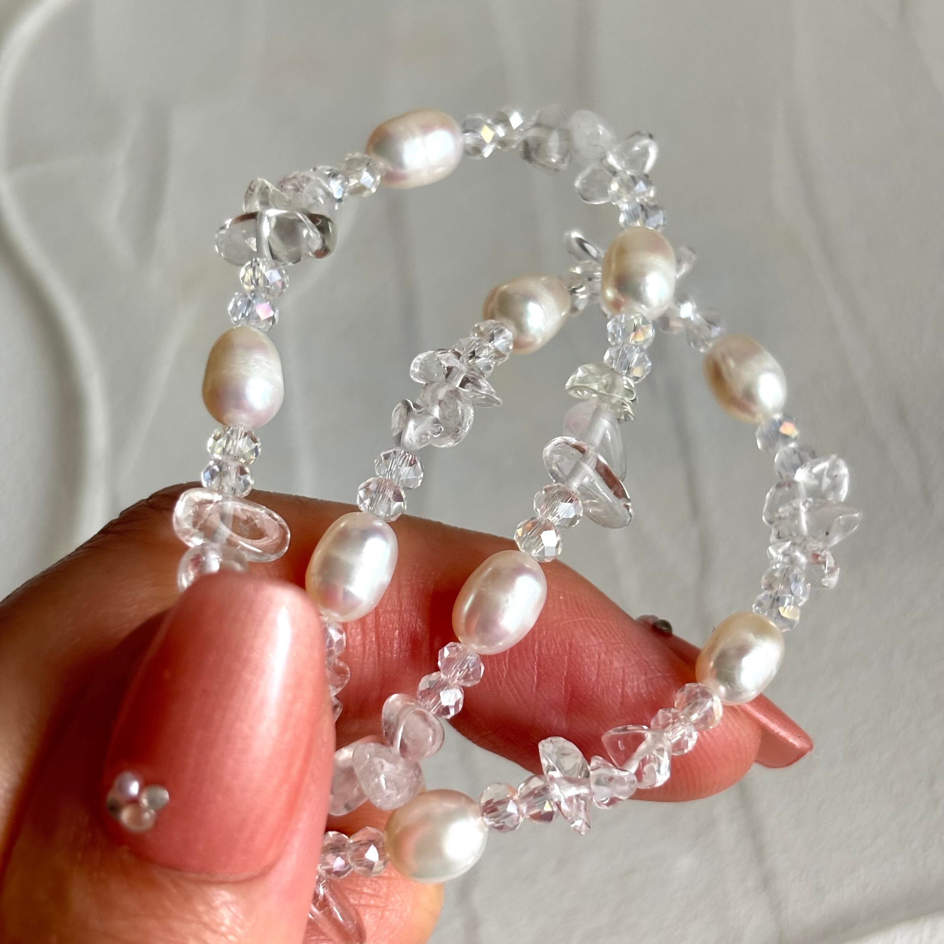 水晶(さざれ石)淡水パール、ガラスビーズ