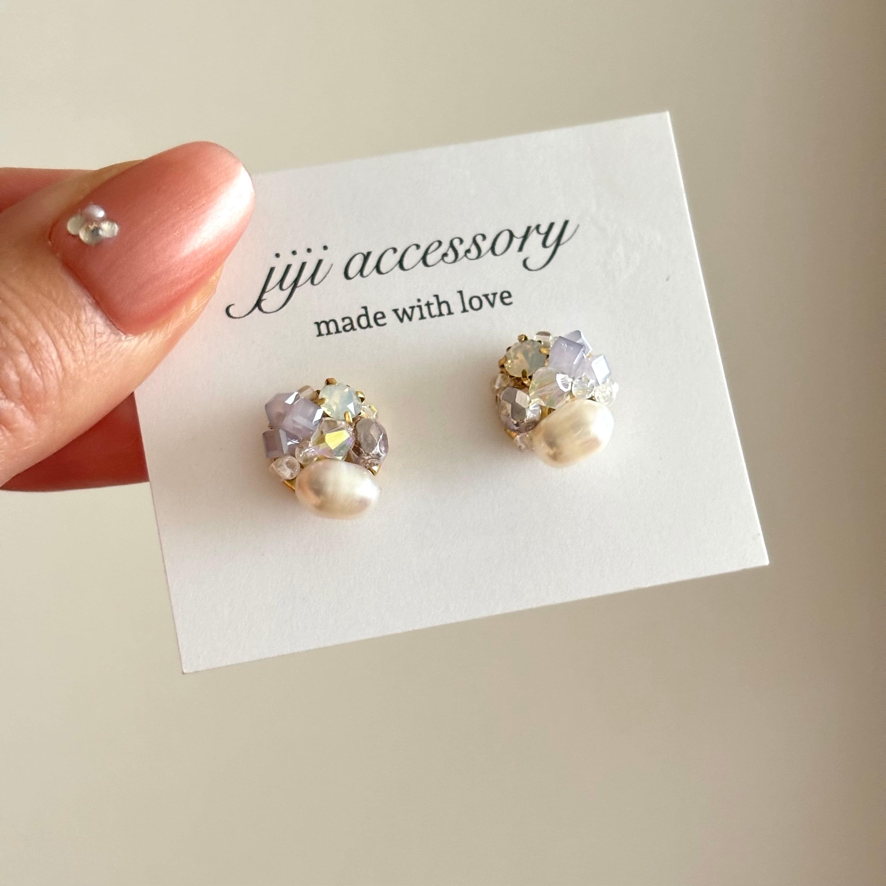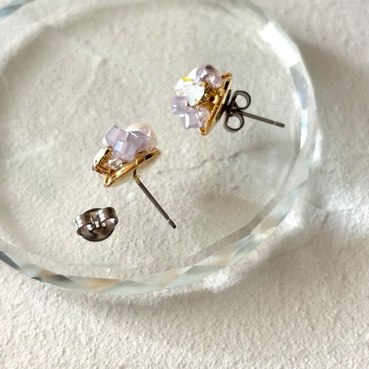 クリスタルやビーズをぎゅっと詰め込んだ小さなピアス。