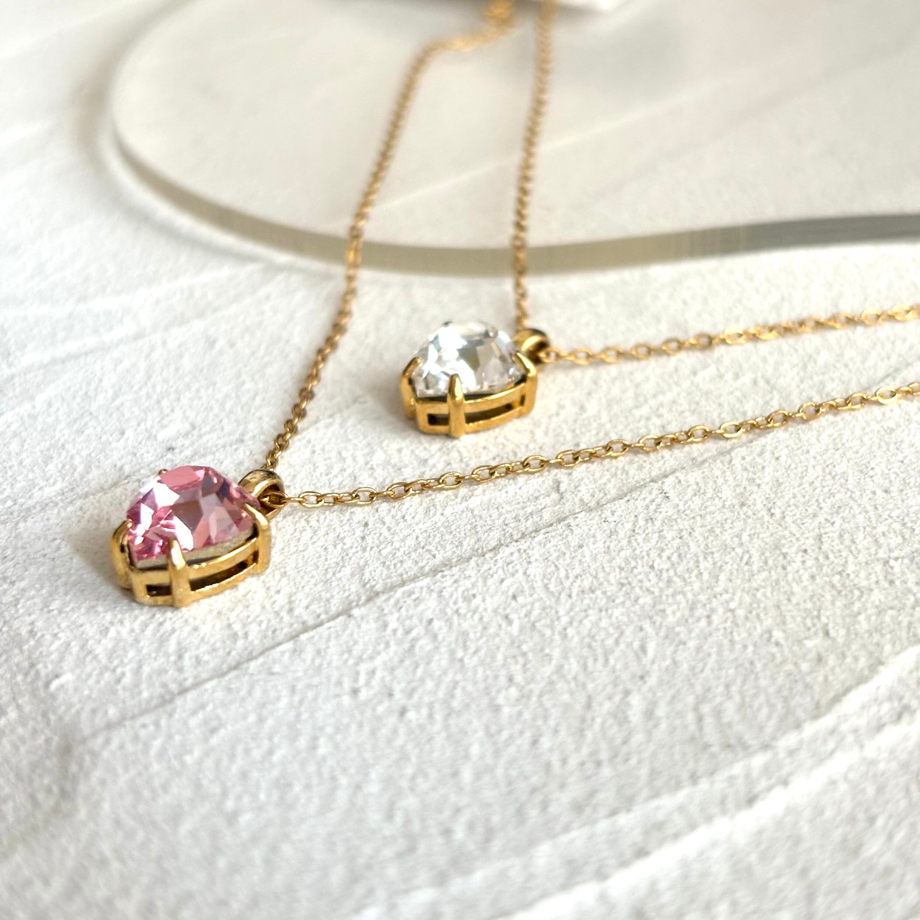 輝く胸元を演出するシンプルなハートのクリスタルネックレス