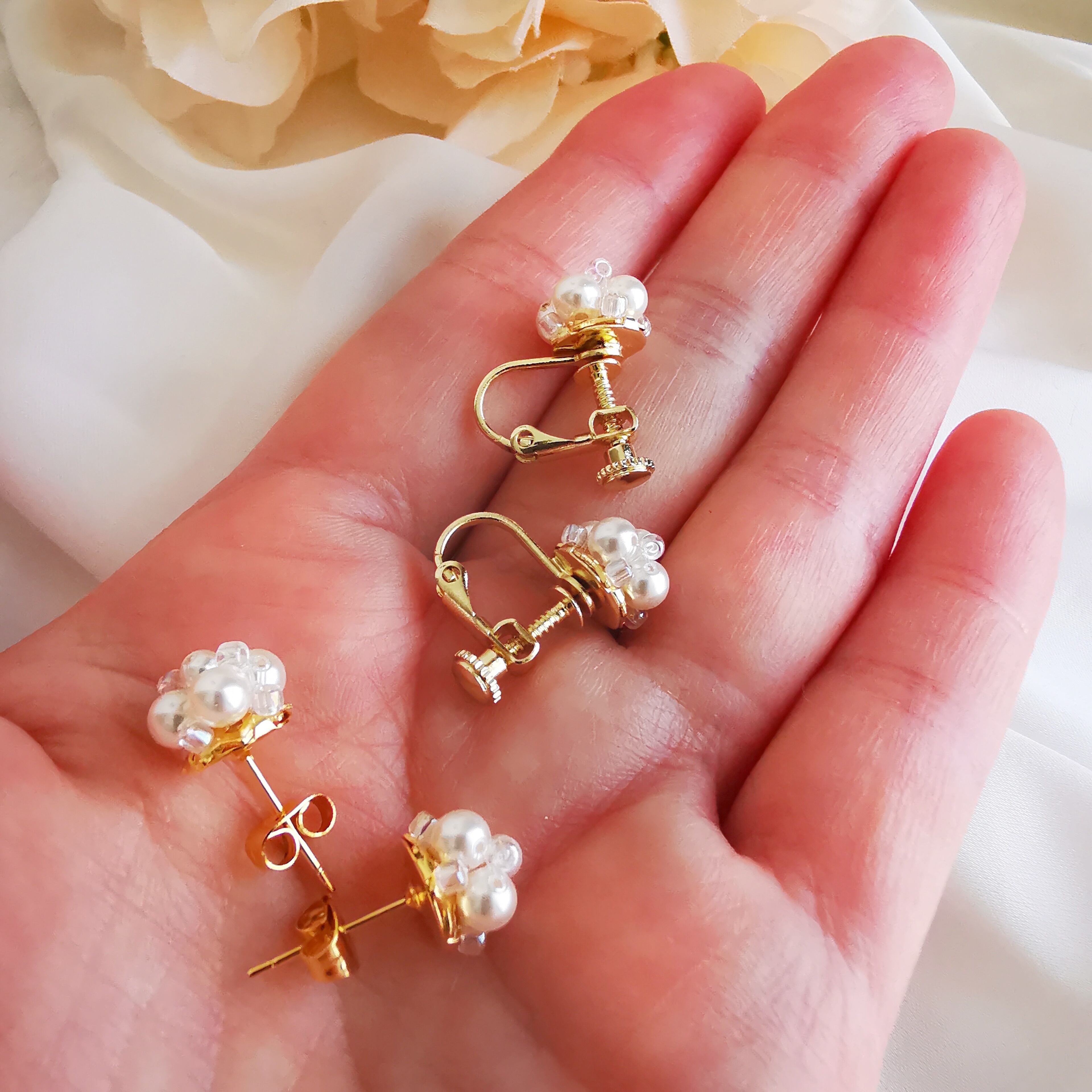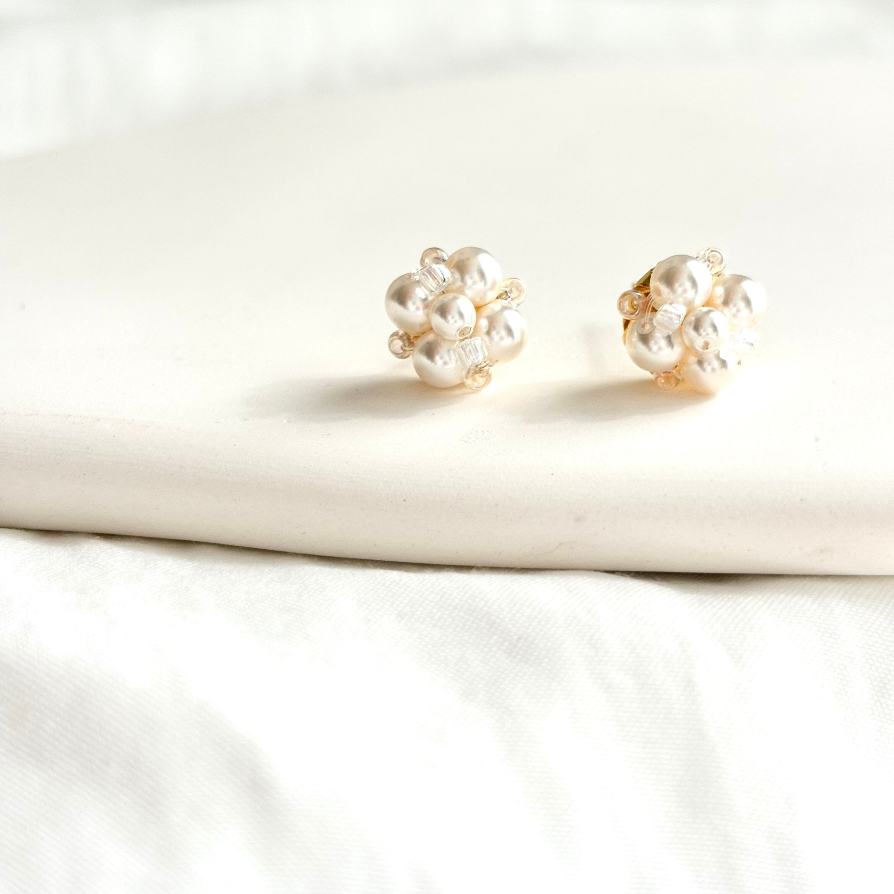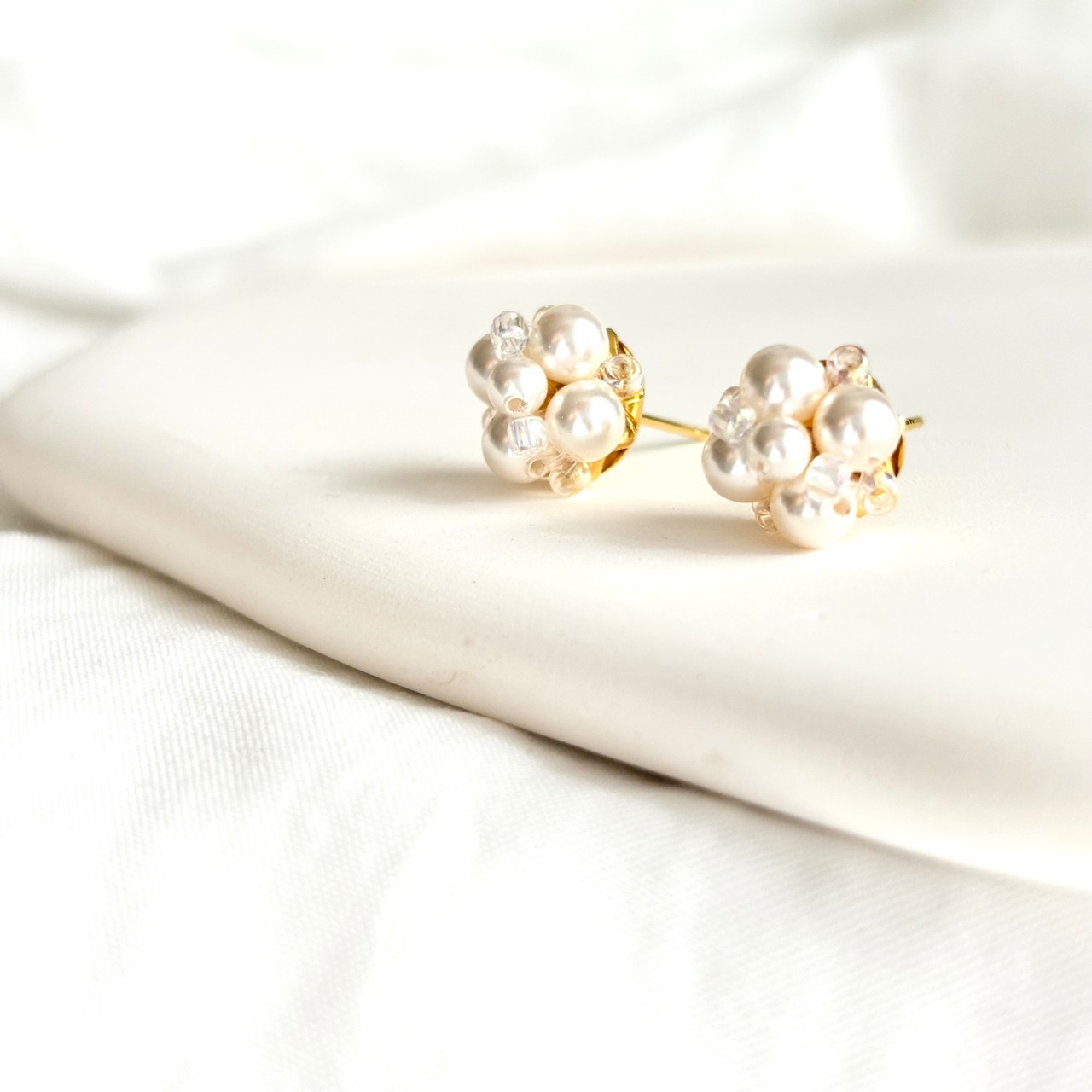 クリスタルパールを編み込んだ小粒ピアス/イヤリングです。