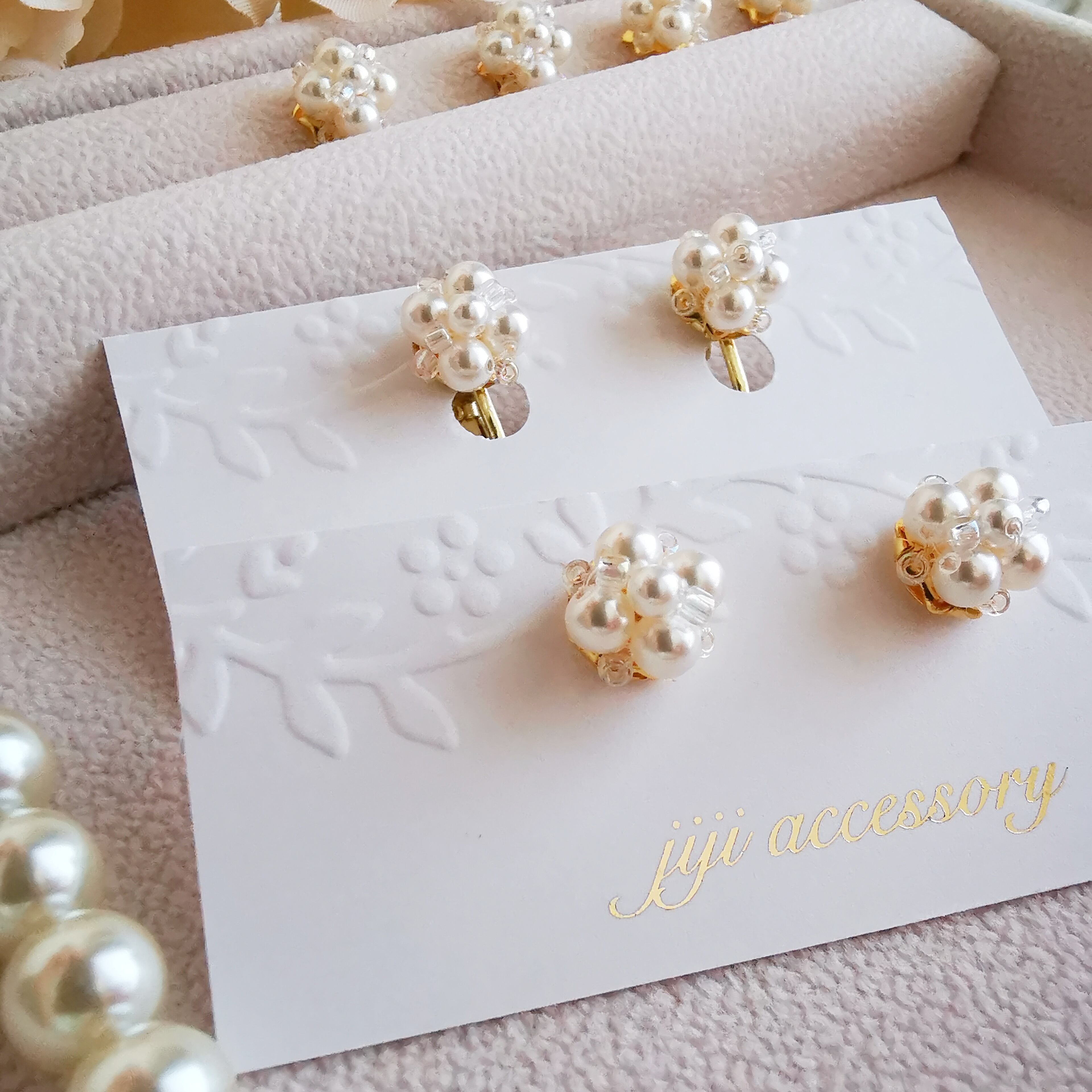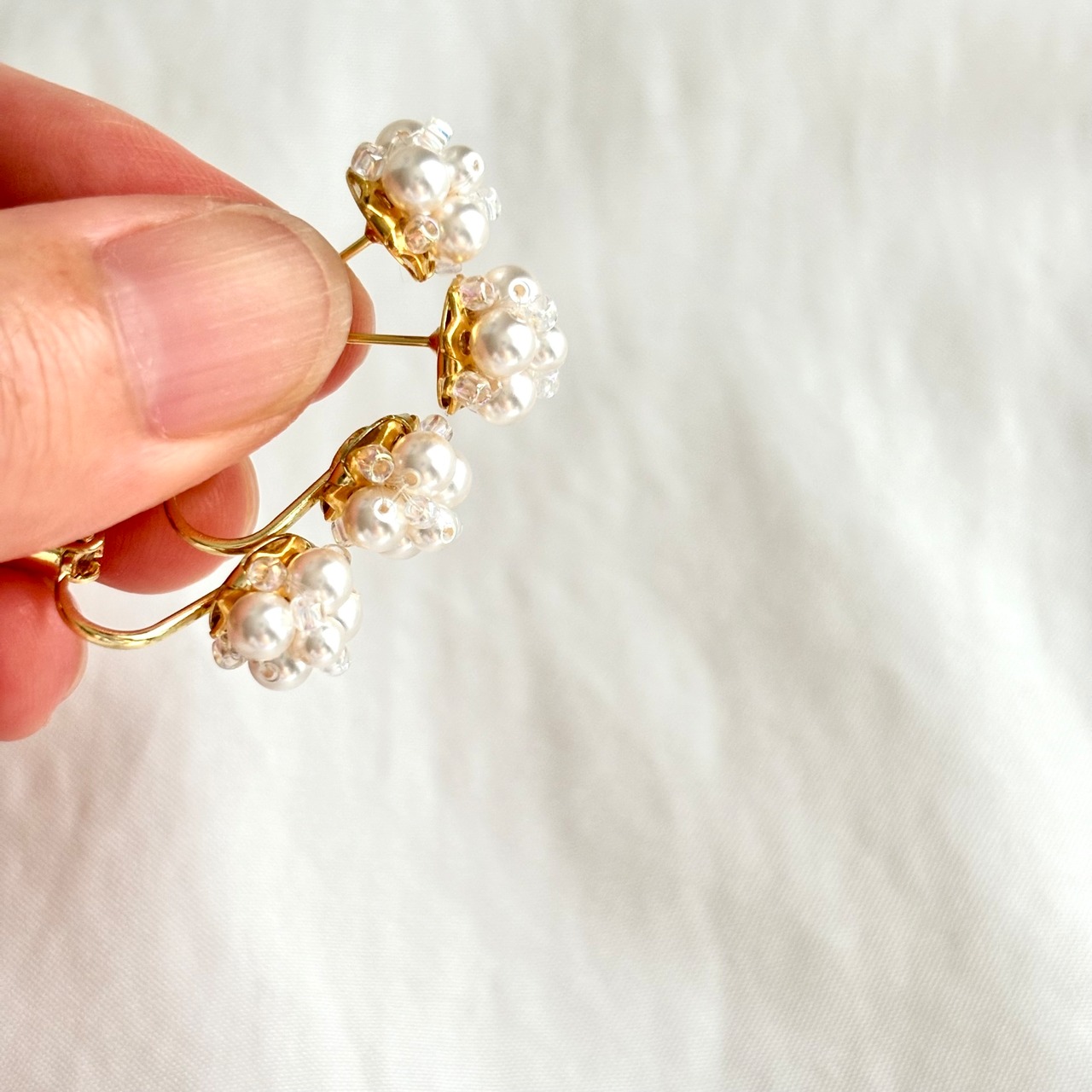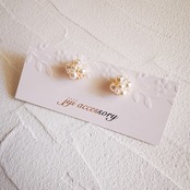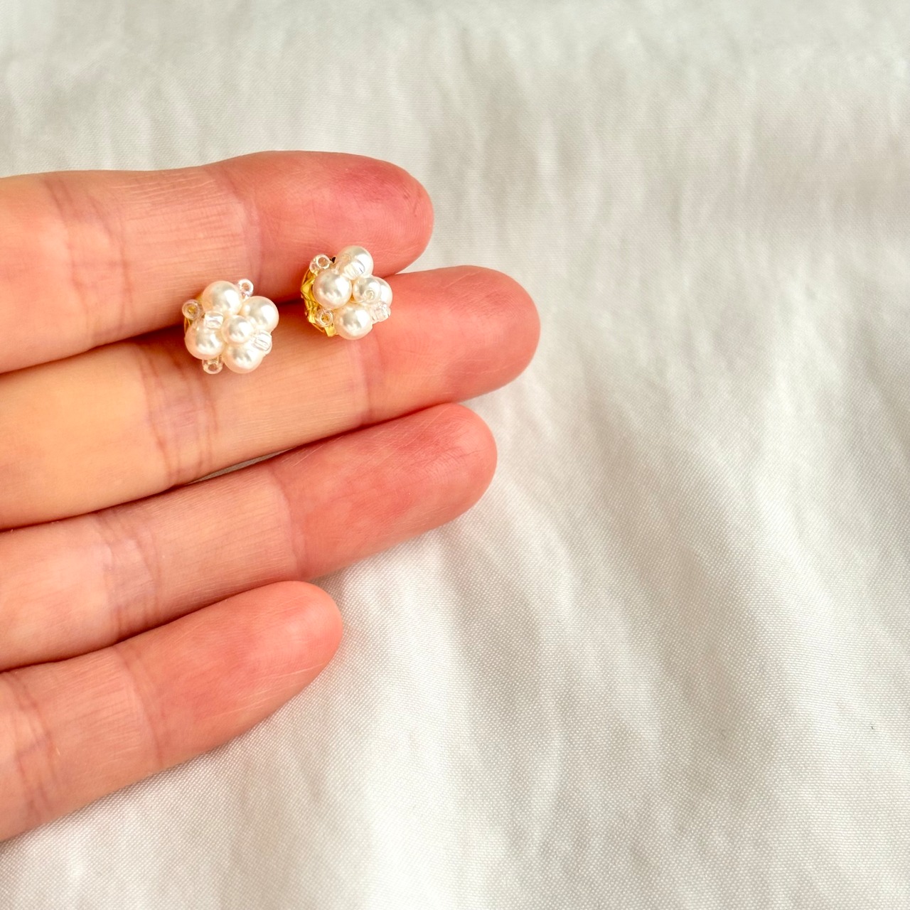 クリスタルパールを編み込んだ小粒ピアス/イヤリングです。