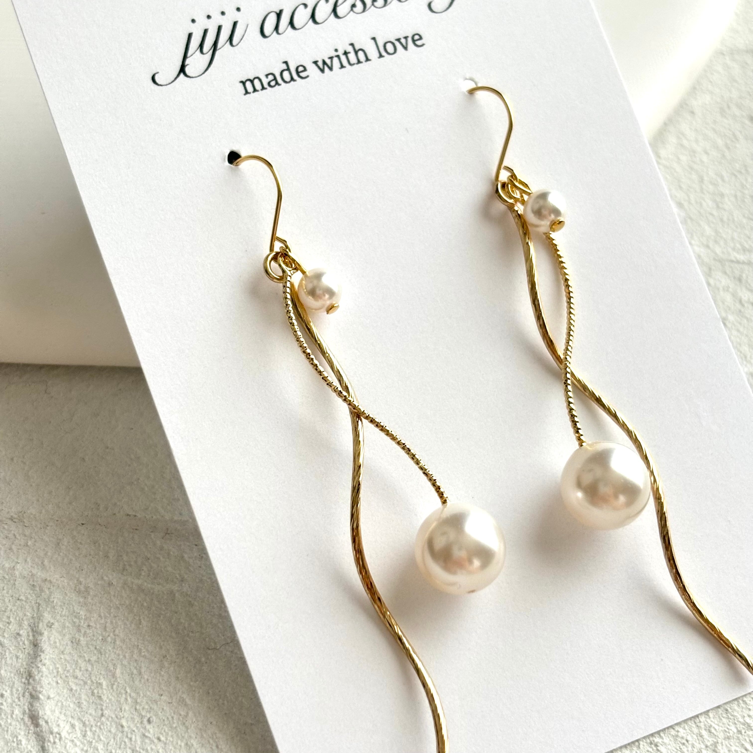 風になびくロングヘアーの耳元から柔らかい雰囲気を醸し出す、そんなイメージを思わせる耳飾りです。