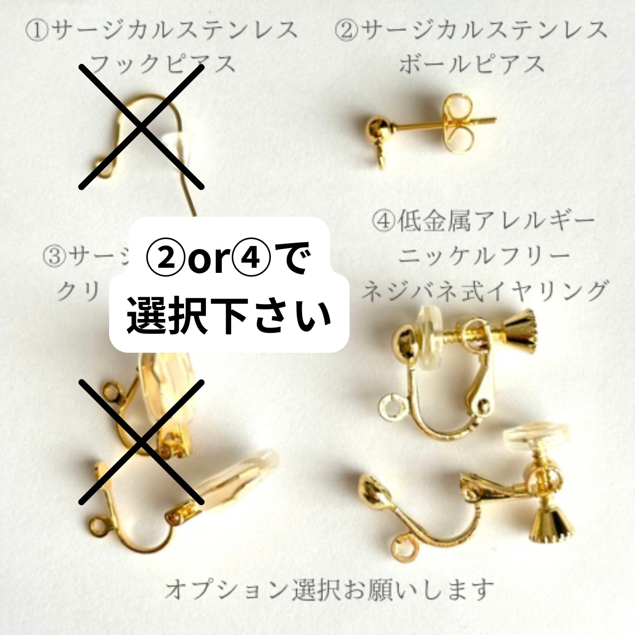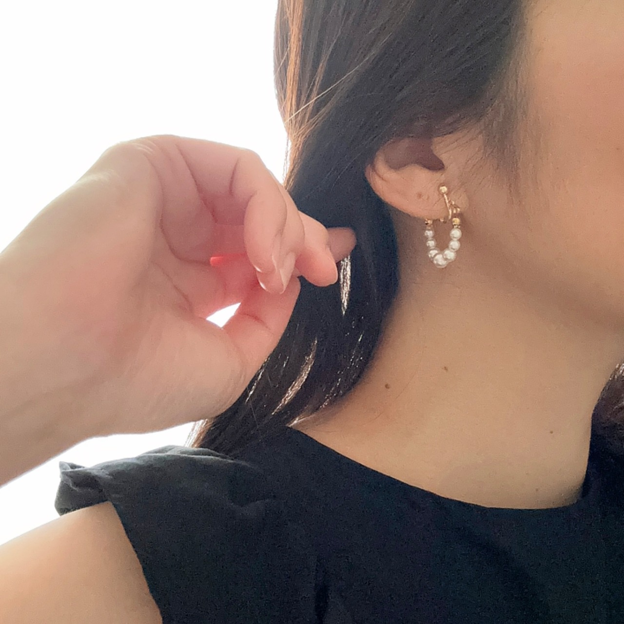 前から見ると、イヤリング金具が隠れるので