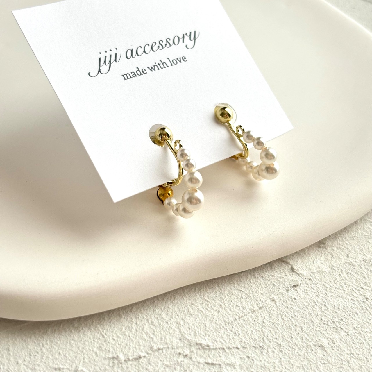 クリスタルパールのフープピアス/イヤリング