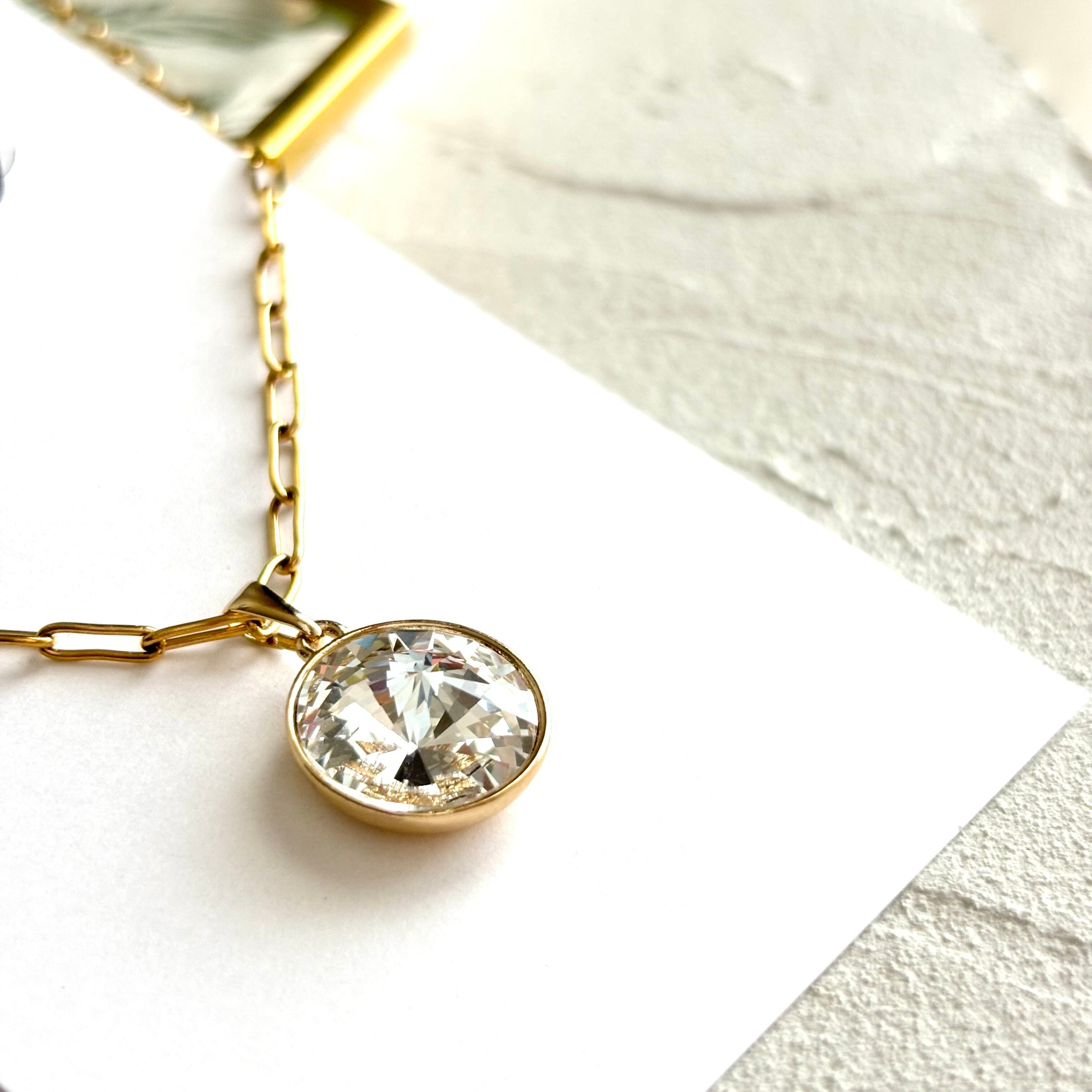 〖長さ調節可能〗 クリスタルとデザインチェーンのネックレス
